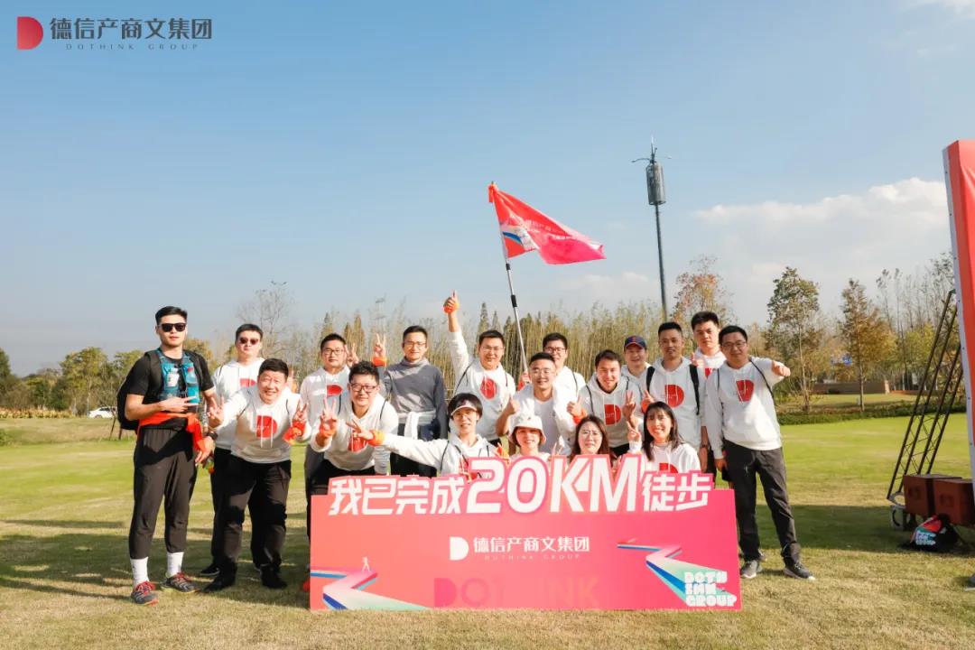 最后,德信产商文集团总裁胡斌对整场毅行活动进行总结。胡总表示,希望大家一直保持着今天毅行20KM所展现出来的坚持和拼搏精神,创新远见,一起向前。作为一个年轻的团队,德信产商文集团未来的路程很长,需要攀登更高的山峰,需要大家保持今天这份团队精神,不断突破自己,相互协作赋能,一起创造德信产商文集团的崭新未来。