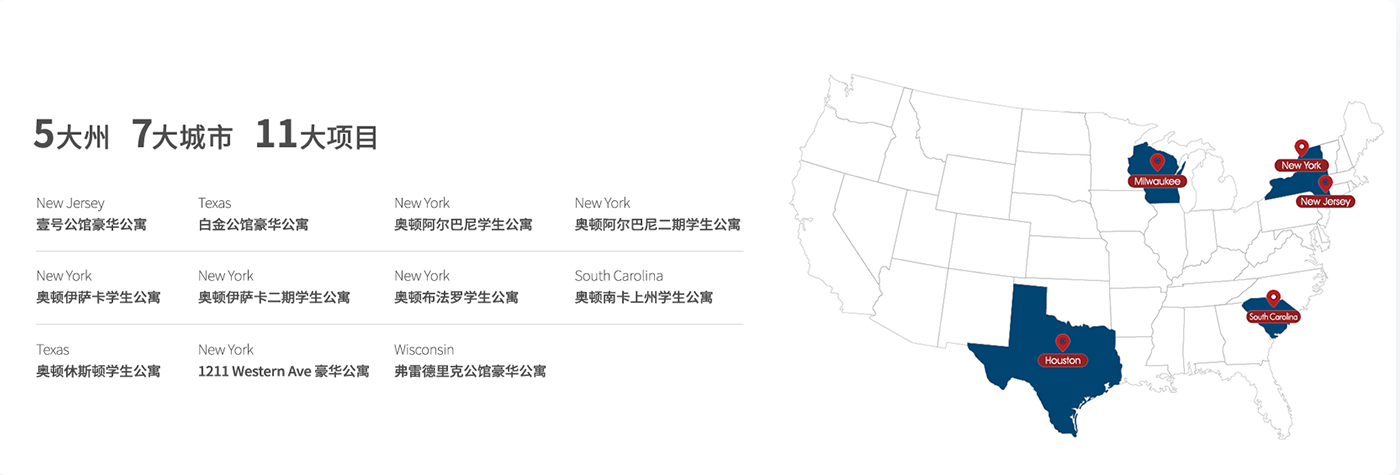 2014年德信进军美国市场,于纽约华尔街100号设立DMG Investments LLC (简称“DMG”),开启杭州本土房企海外投资时代。DMG结合了德信集团深厚的产业背景、国际化的投资经验以及良好的公共关系,凭借独特的市场定位,以及资深的国际化管理团队,致力于通过开发、持有和经营具有增值空间的优质学生公寓、租赁公寓以及产权公寓,建立从大学入学、求职就业、到事业上有建树的全生命周期公寓品牌。如今DMG在美国已布局5大州,7大城市,开发11大项目,取得了令人瞩目的成绩,德信的跨国发展之路也在此基础上越走越稳。