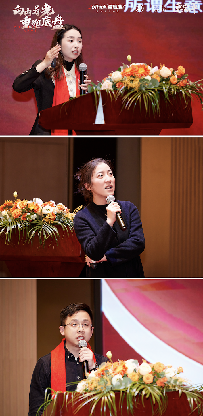 最后,德信地产集团总裁费忠敏费总为全体德家军战士做了总结寄语。过去的一年,整个房地产市场非常艰难,感谢德家军战士的付出,面对新形势,期望大家要有自驱性、不断提升自身能力,不为自己设限,发挥自身价值,一起向光而行
