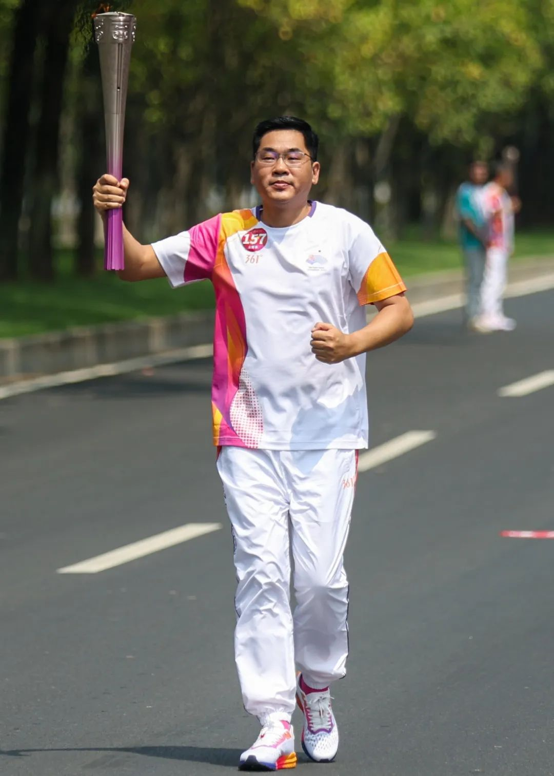 9月14日上午9点,杭州亚运火炬传递台州站正式开跑。德信服务集团执行董事兼总裁唐俊杰参与本次火炬传递,向全世界展现物业企业的服务风采和精神风貌。上午11时许,德信服务集团执行董事兼总裁唐俊杰,作为第157棒火炬手,庄严地从上一棒火炬手手中接过圣火。火炬微微倾斜相交,“薪火”相传的时刻,两人一起比了一个大大的加油手势。1分多钟后,唐俊杰就跑到了下一位火炬手面前,交接圣火,竖起大拇指,完成火炬传递之旅。